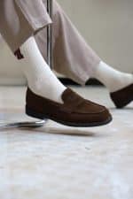 - The exclusive choice of suede calfskin because it is the softest. A microcellular crepe rubber sole, soft as a muffin.