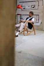 There’s a man (is he an architect? Is he an artist?) in loose, comfortable clothing. He is free to move with ease & free to create, light-headed. He could come sit over here, crouch there, run, draw, sing, sleep or be silent. He surely is in his best possible disposition. He raises his arms and creates a dance step. Then, he is a dancer, right?