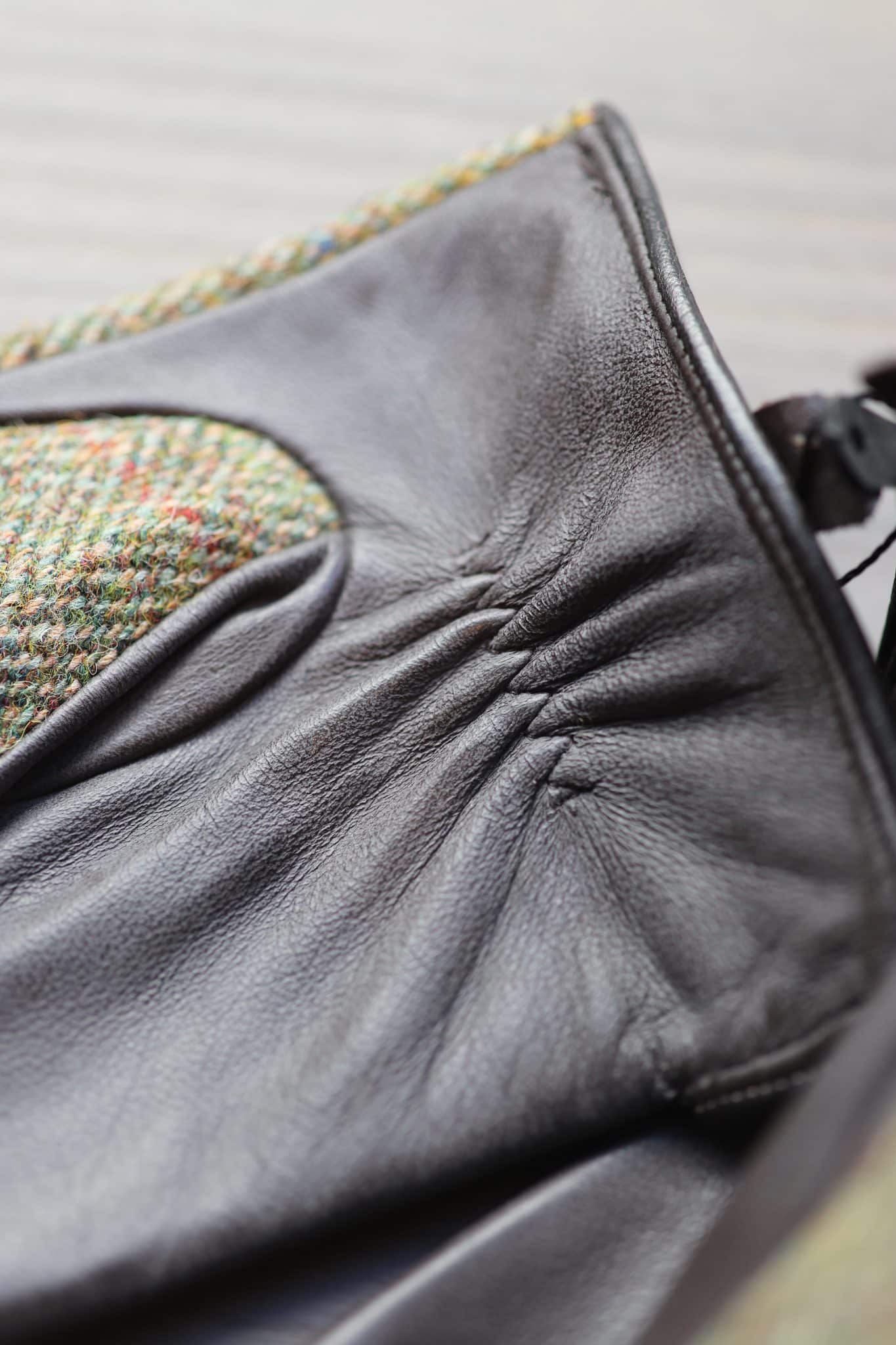 Genuine leather and pure wool Harris tweed