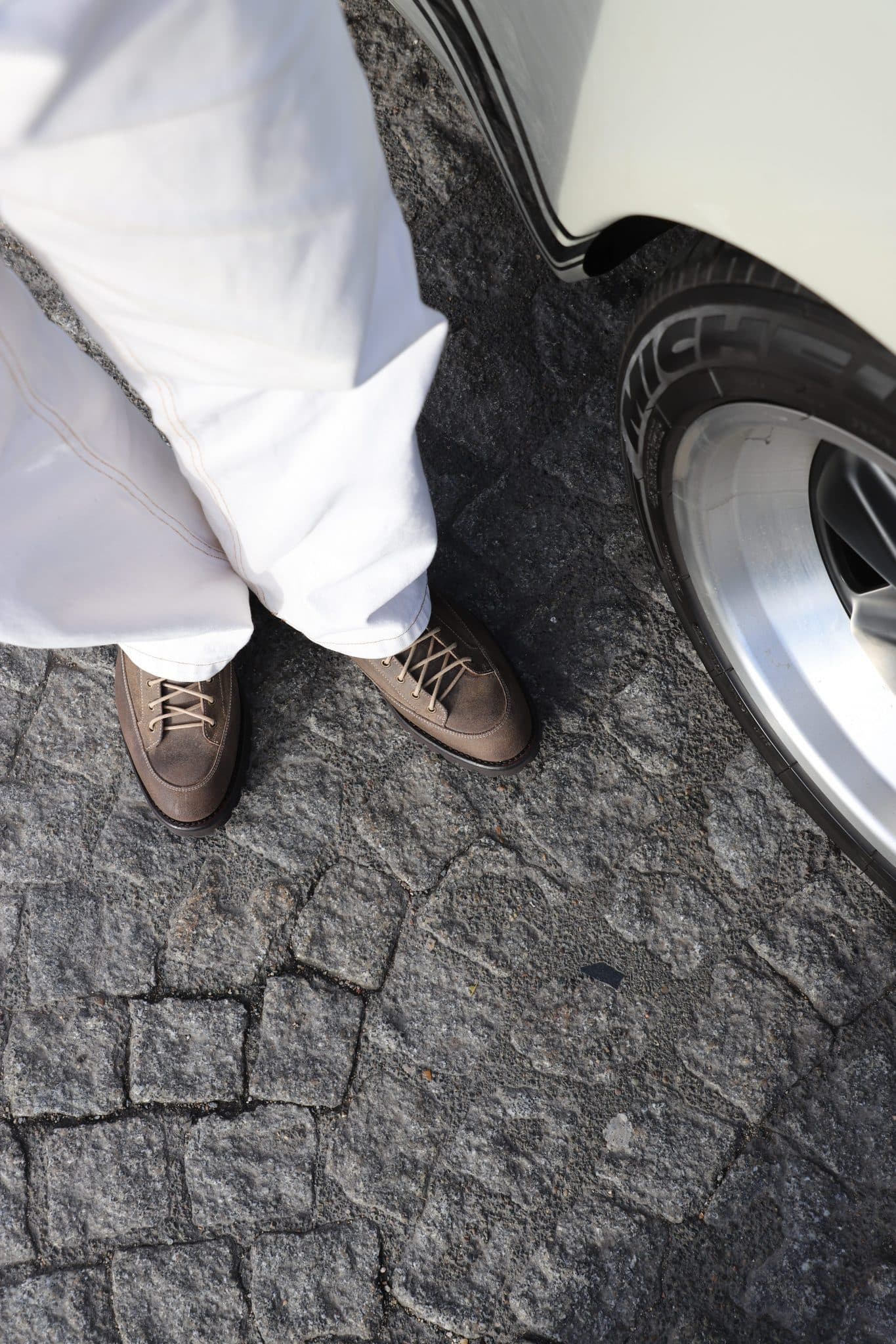 It all starts with an exceptionally robust leather, bewitching with its brutalist and tough look, so surprising when you caress it for the first time. Tame it, this shoe won’t laugh in the face of adversity. Or rather it will, with a calm and confident smile.