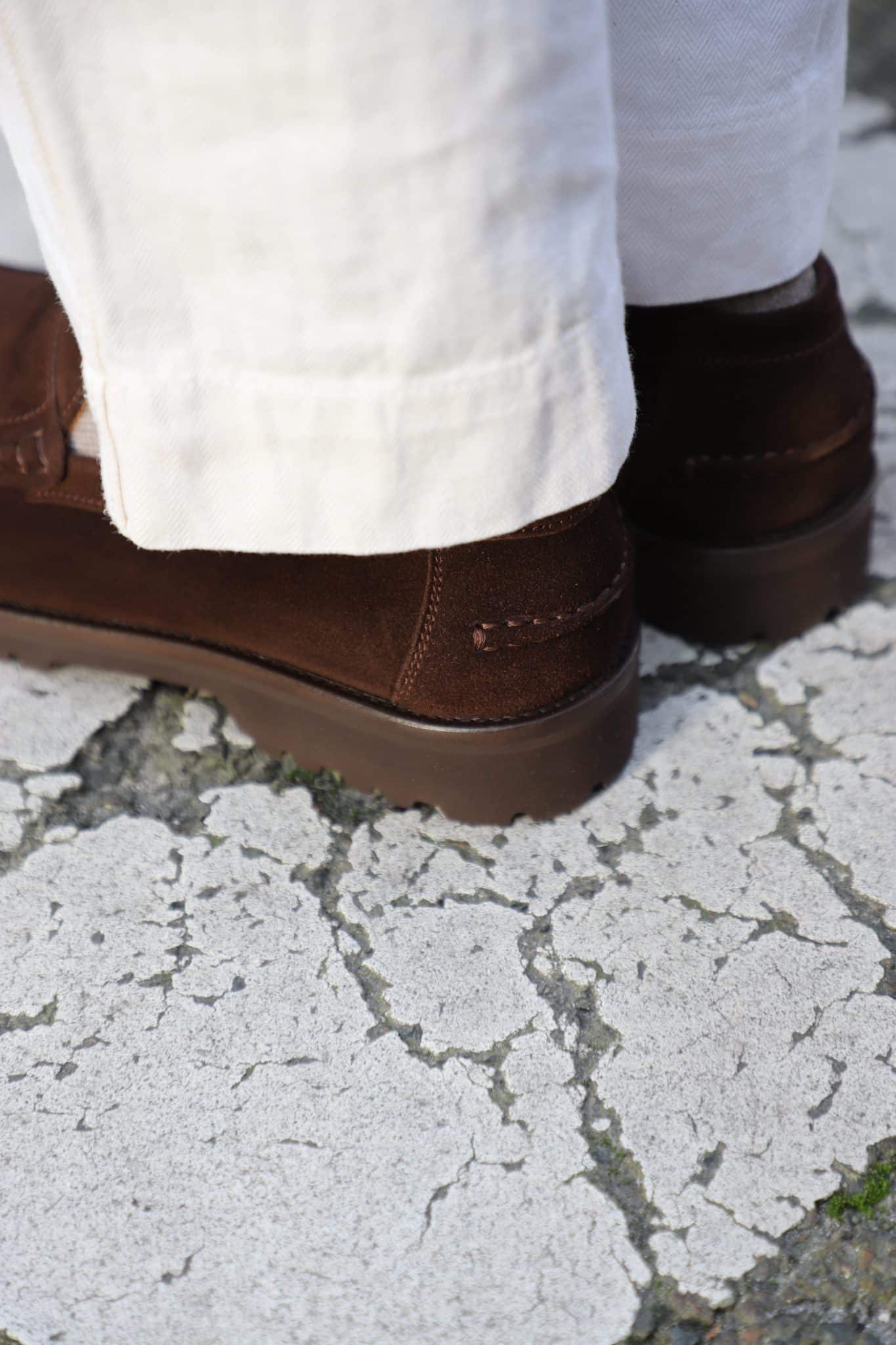 Crafted from Italian velvet of incomparable richness and depth of color, this loafer catches the light with a subtlety worthy of the finest hours of IVY style. Its clean line, a direct heiress to the most sought-after silhouettes of that decade, ensures you have an effortless sprezzatura look, whether paired with an unstructured suit or fitted chinos.