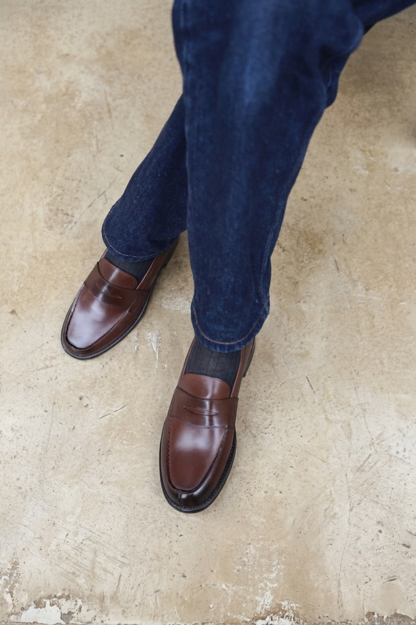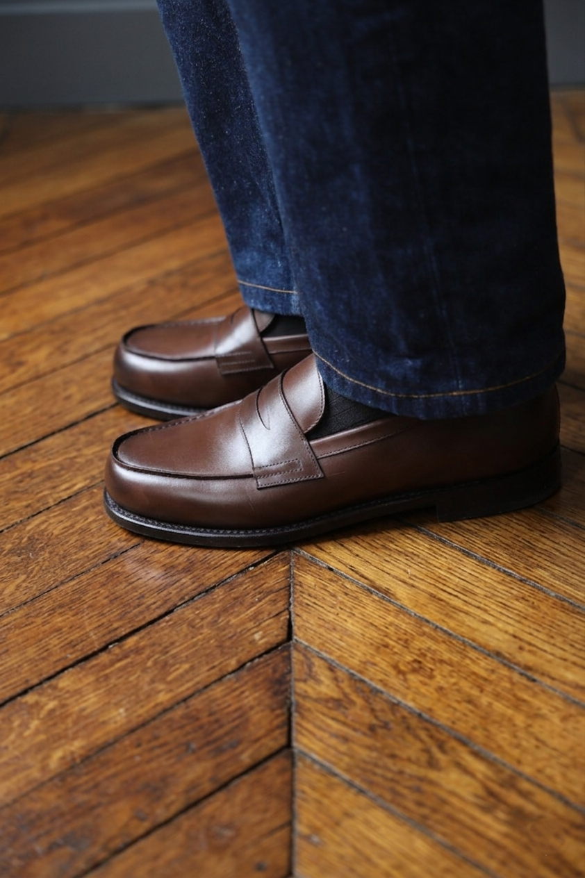 Mocassin à plateau traditionnel, bien proportionné, simple, rigoureusement polyvalent.